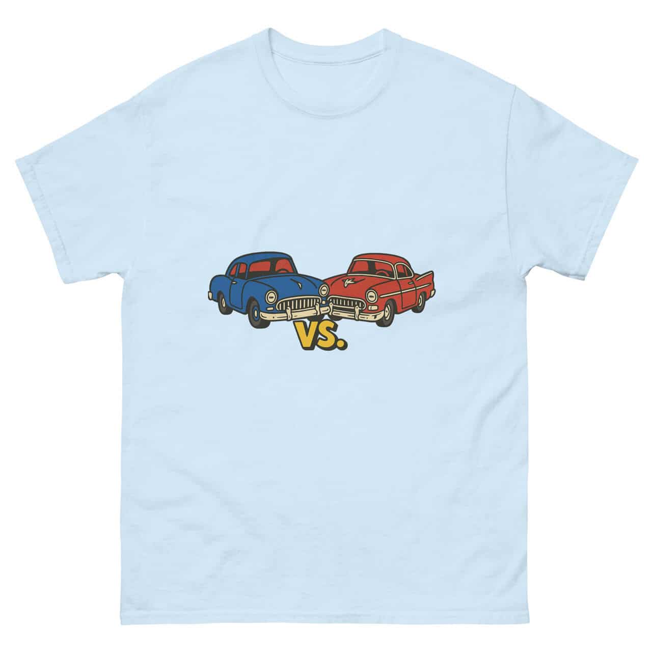 Made from 100% cotton, this unisex t-shirt provides a structured look that sits well and keeps its sharp edges. It’s ideal for layering with streetwear, and thanks to the red car vs blue car design, it’s sure to turn heads and spark conversations. This red car vs blue car t-shirt blends retro vibes with modern comfort – the ultimate fit for fans of milky way chocolate nostalgia.