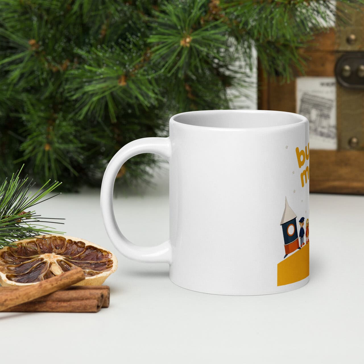 Enjoy your favourite hot drinks while reliving the adventures from the kitchen planet with your own Button Moon mug.